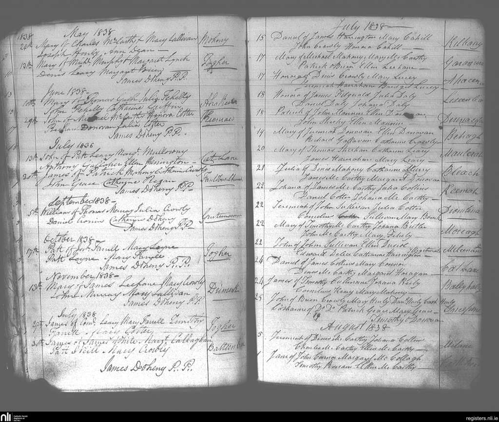Dunmanway; County of Cork; Diocese of Cork and Ross. Baptisms, May 1838 to Nov. 1838