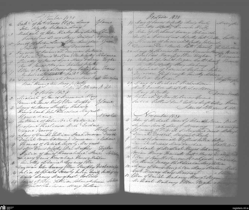 Dunmanway; County of Cork; Diocese of Cork and Ross. Baptisms, Sep. 1838 to Nov. 1838