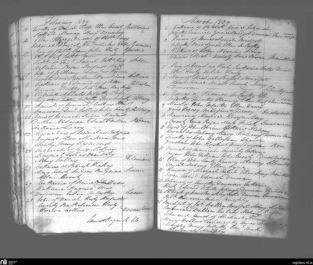 Dunmanway; County of Cork; Diocese of Cork and Ross. Baptisms, Feb. 1839 to Mar. 1839