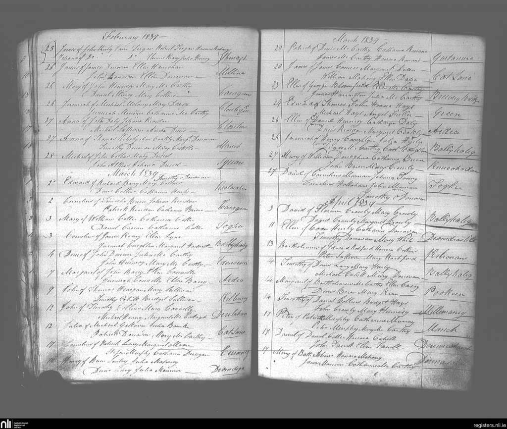 Dunmanway; County of Cork; Diocese of Cork and Ross. Baptisms, Feb. 1839 to Apr. 1839