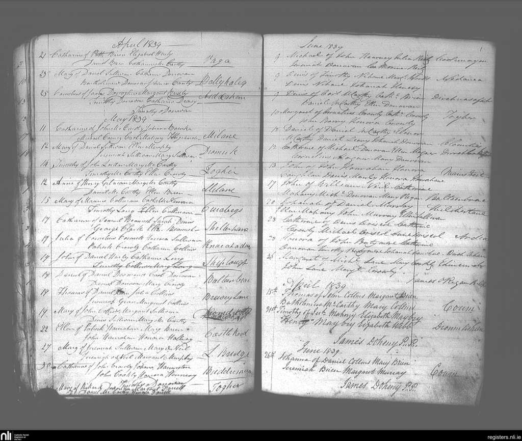 Dunmanway; County of Cork; Diocese of Cork and Ross. Baptisms, Apr. 1839 to June 1839