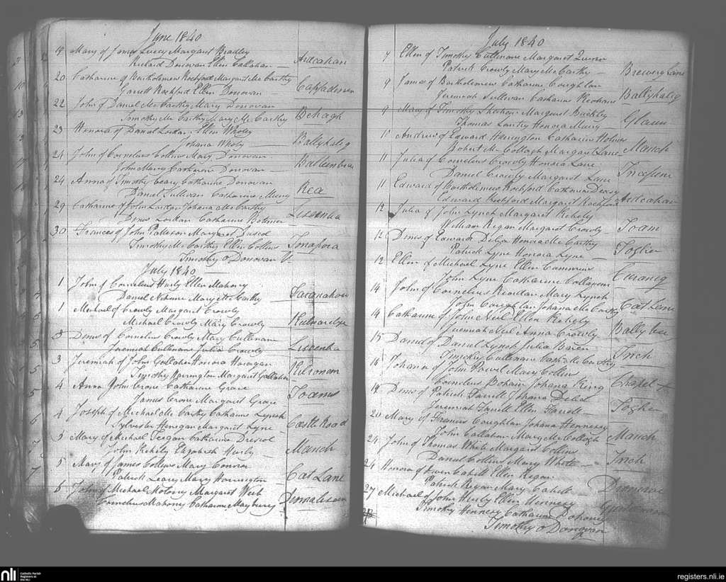 Dunmanway; County of Cork; Diocese of Cork and Ross. Baptisms, June 1840 to July 1840