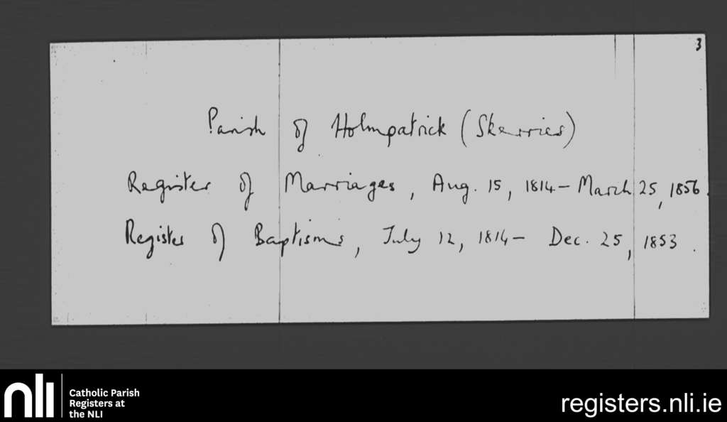 Skerries; County of Dublin; Archdiocese of Dublin. Marriages, Baptisms