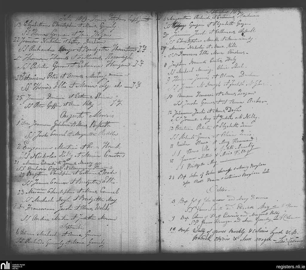 Skerries; County of Dublin; Archdiocese of Dublin. Baptisms, July 1819 to Oct. 1819
