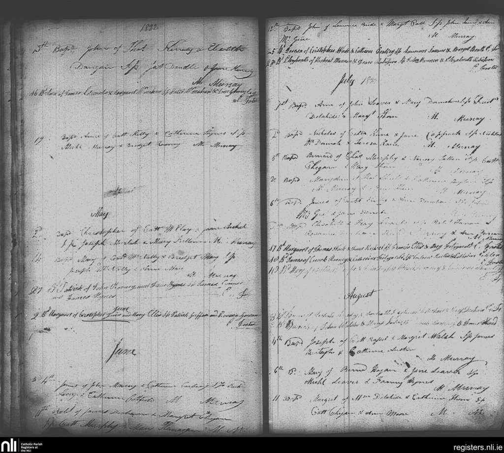 Skerries; County of Dublin; Archdiocese of Dublin. Baptisms, Apr. 1822 to Aug. 1822