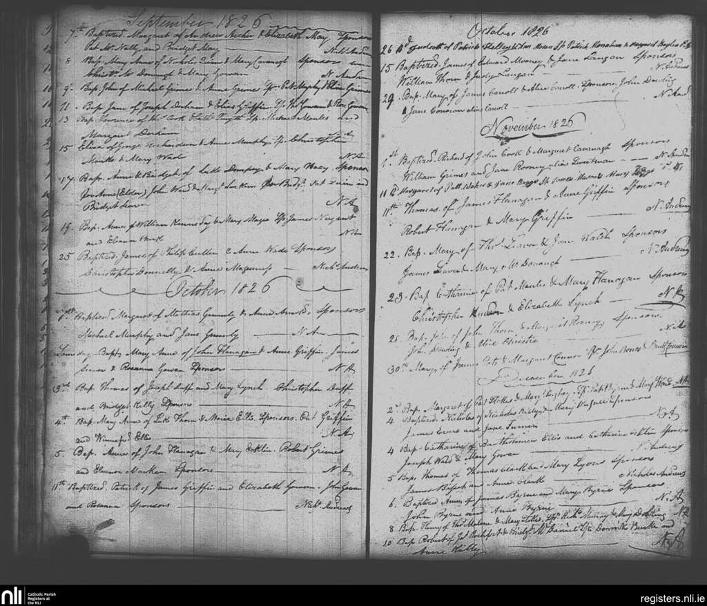 Skerries; County of Dublin; Archdiocese of Dublin. Baptisms, Sep. 1826 to Dec. 1826