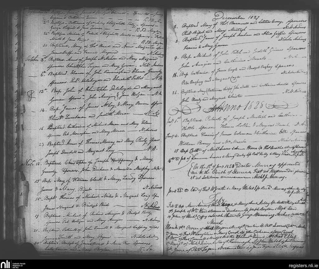 Skerries; County of Dublin; Archdiocese of Dublin. Baptisms, Sep. 1827 to Mar. 1828