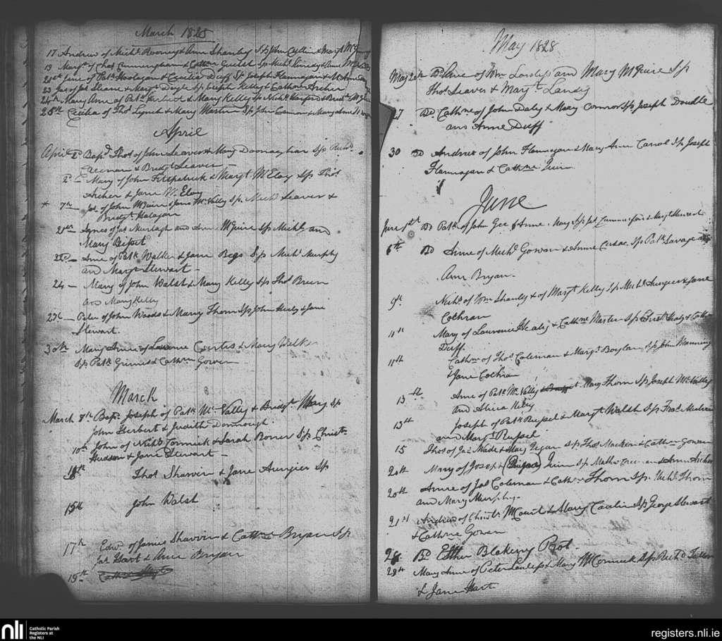 Skerries; County of Dublin; Archdiocese of Dublin. Baptisms, Mar. 1828 to June 1828