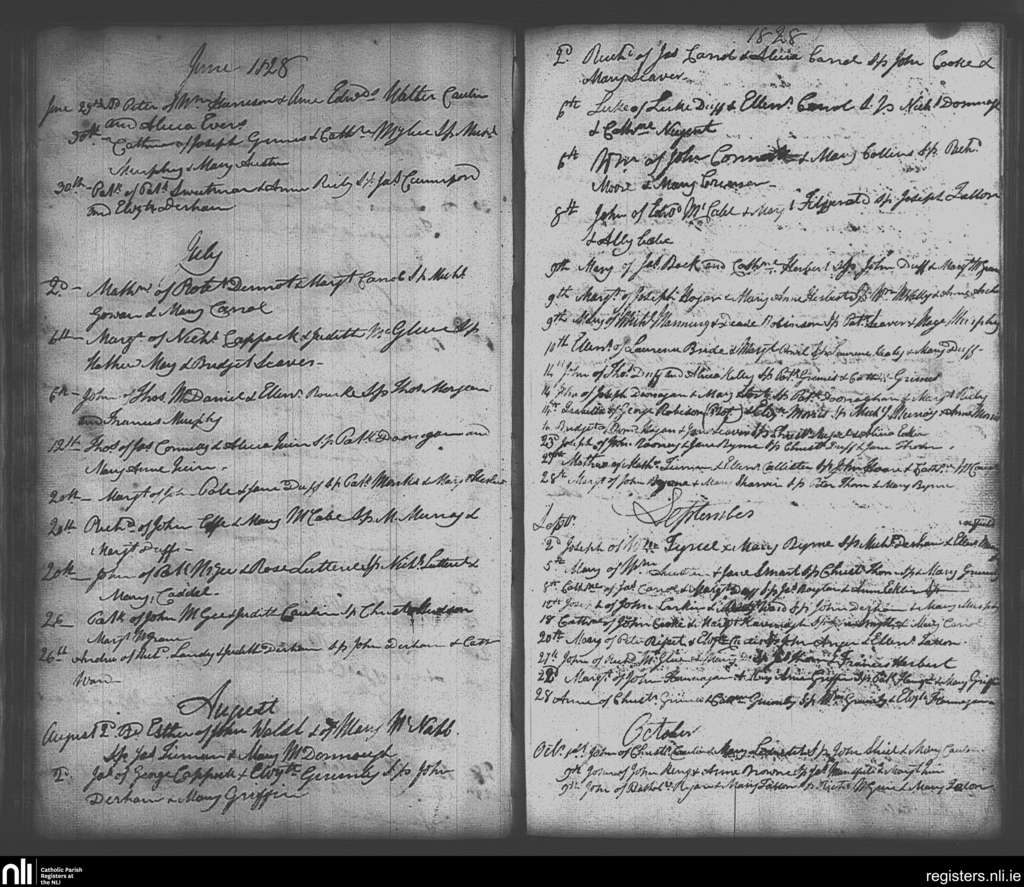 Skerries; County of Dublin; Archdiocese of Dublin. Baptisms, June 1828 to Oct. 1828