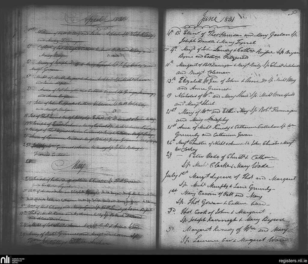 Skerries; County of Dublin; Archdiocese of Dublin. Baptisms, Apr. 1831 to July 1831
