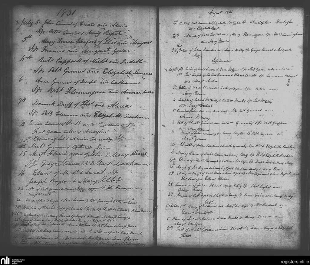 Skerries; County of Dublin; Archdiocese of Dublin. Baptisms, July 1831 to Oct. 1831