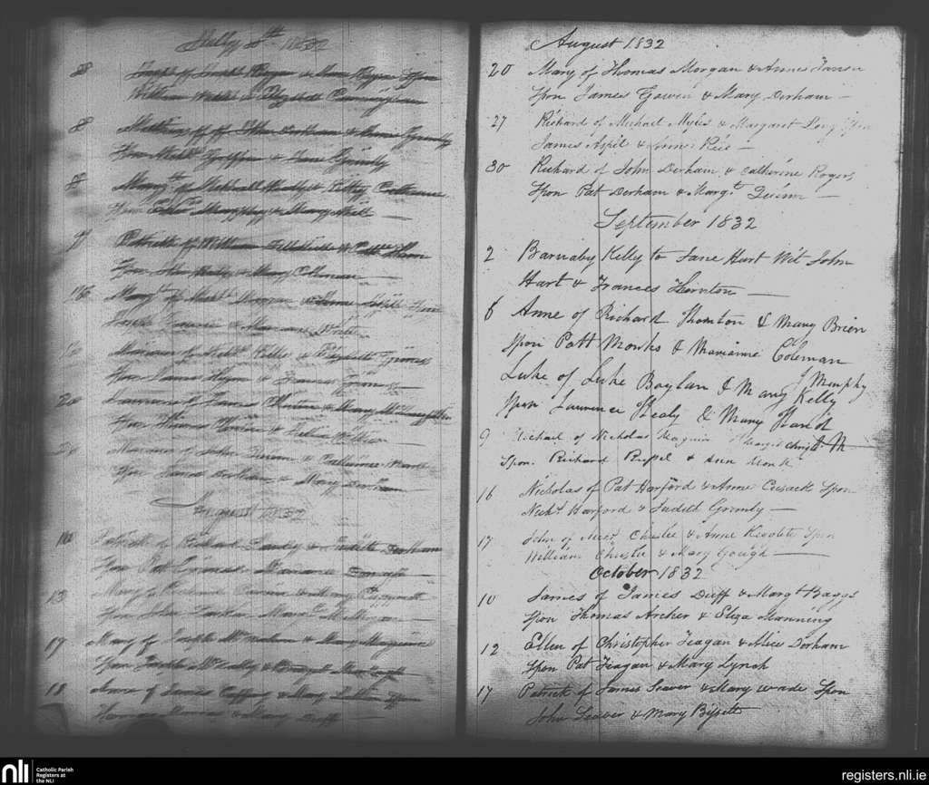 Skerries; County of Dublin; Archdiocese of Dublin. Baptisms, July 1832 to Oct. 1832