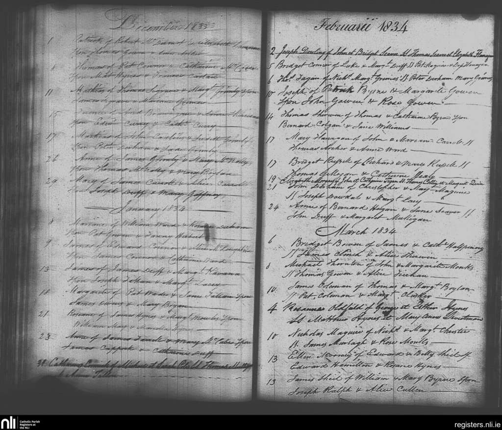 Skerries; County of Dublin; Archdiocese of Dublin. Baptisms, Dec. 1833 to Mar. 1834