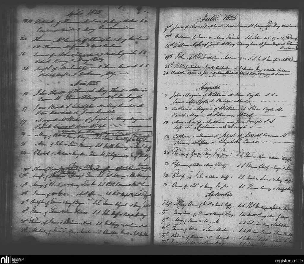 Skerries; County of Dublin; Archdiocese of Dublin. Baptisms, Apr. 1835 to Sep. 1835