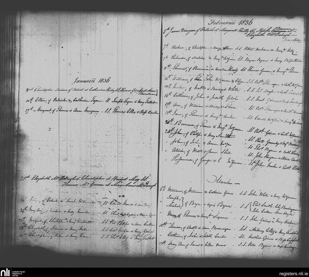 Skerries; County of Dublin; Archdiocese of Dublin. Baptisms, Jan. 1836 to Mar. 1836