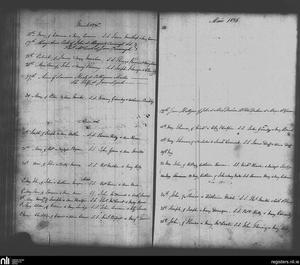 Skerries; County of Dublin; Archdiocese of Dublin. Baptisms, Mar. 1836 to May 1836