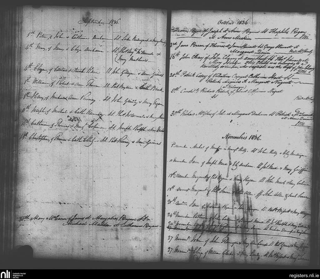 Skerries; County of Dublin; Archdiocese of Dublin. Baptisms, Sep. 1836 to Nov. 1836