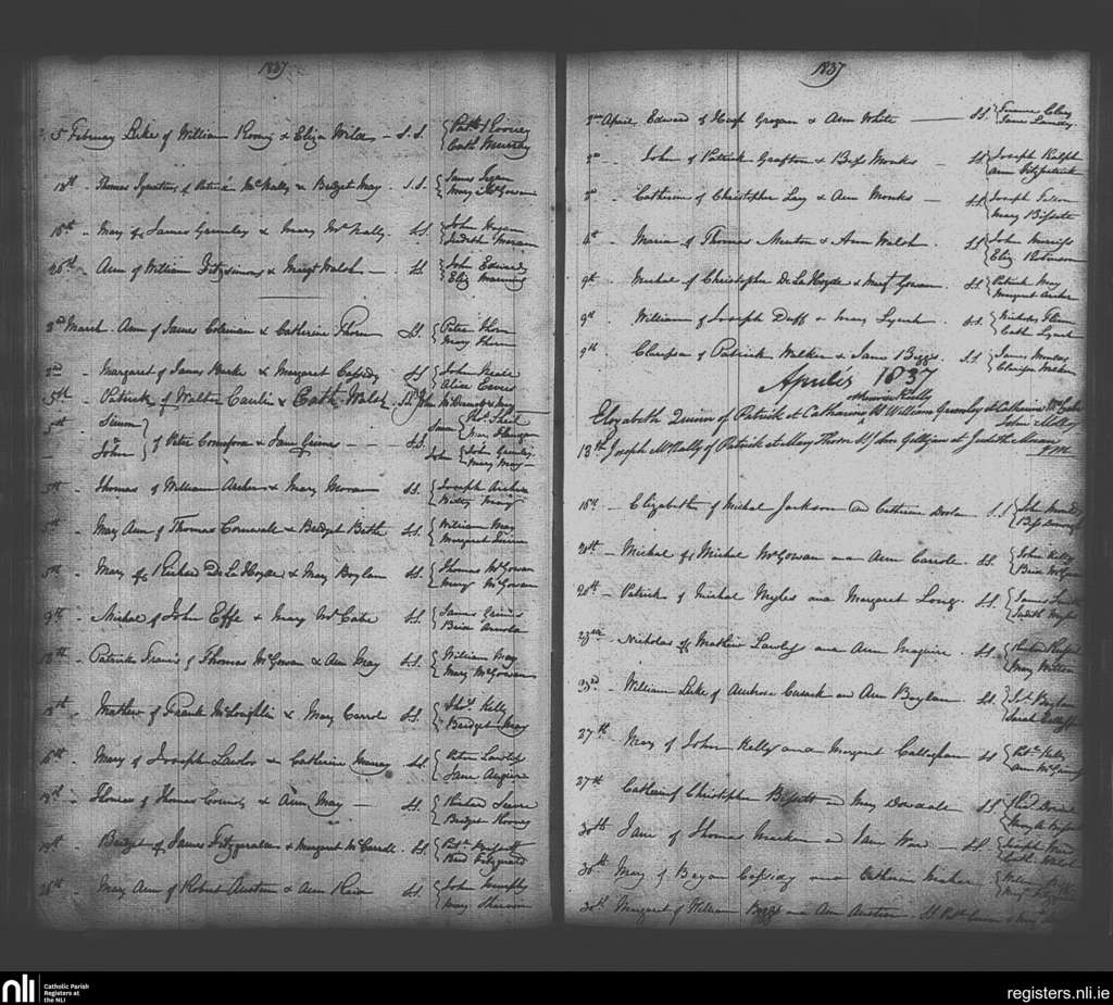 Skerries; County of Dublin; Archdiocese of Dublin. Baptisms, Feb. 1837 to Apr. 1837