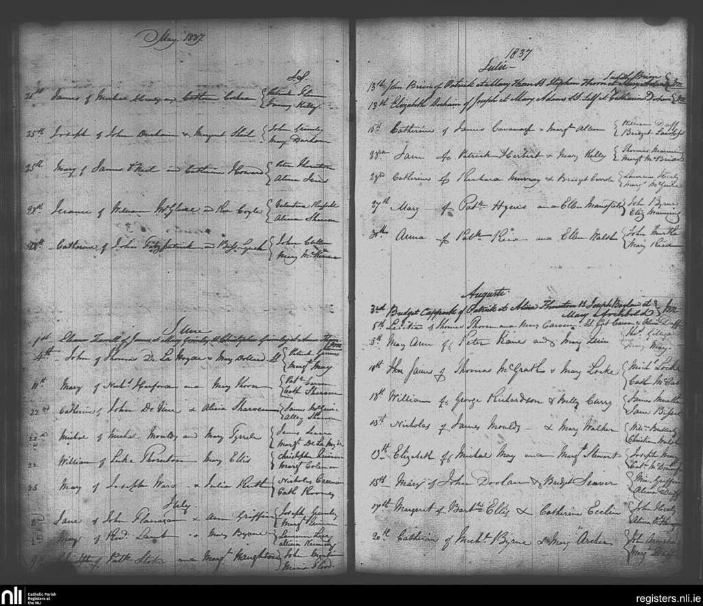 Skerries; County of Dublin; Archdiocese of Dublin. Baptisms, May 1837 to Aug. 1837