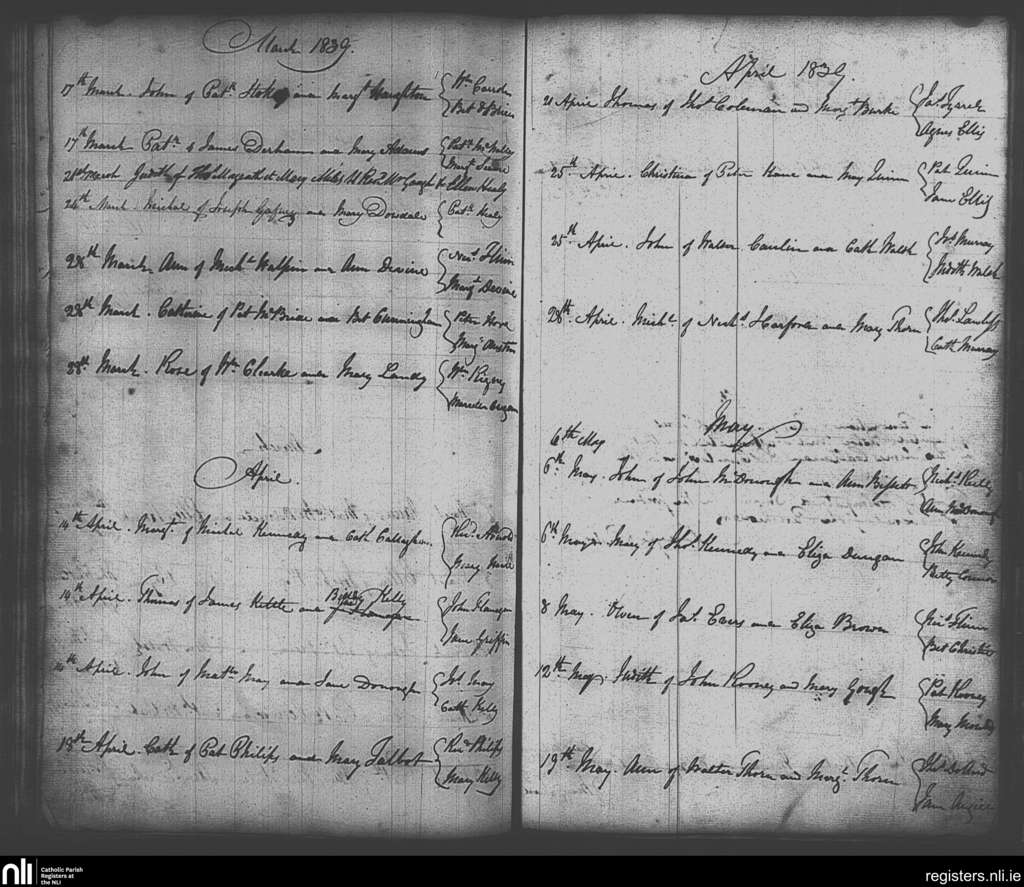 Skerries; County of Dublin; Archdiocese of Dublin. Baptisms, Mar. 1839 to May 1839