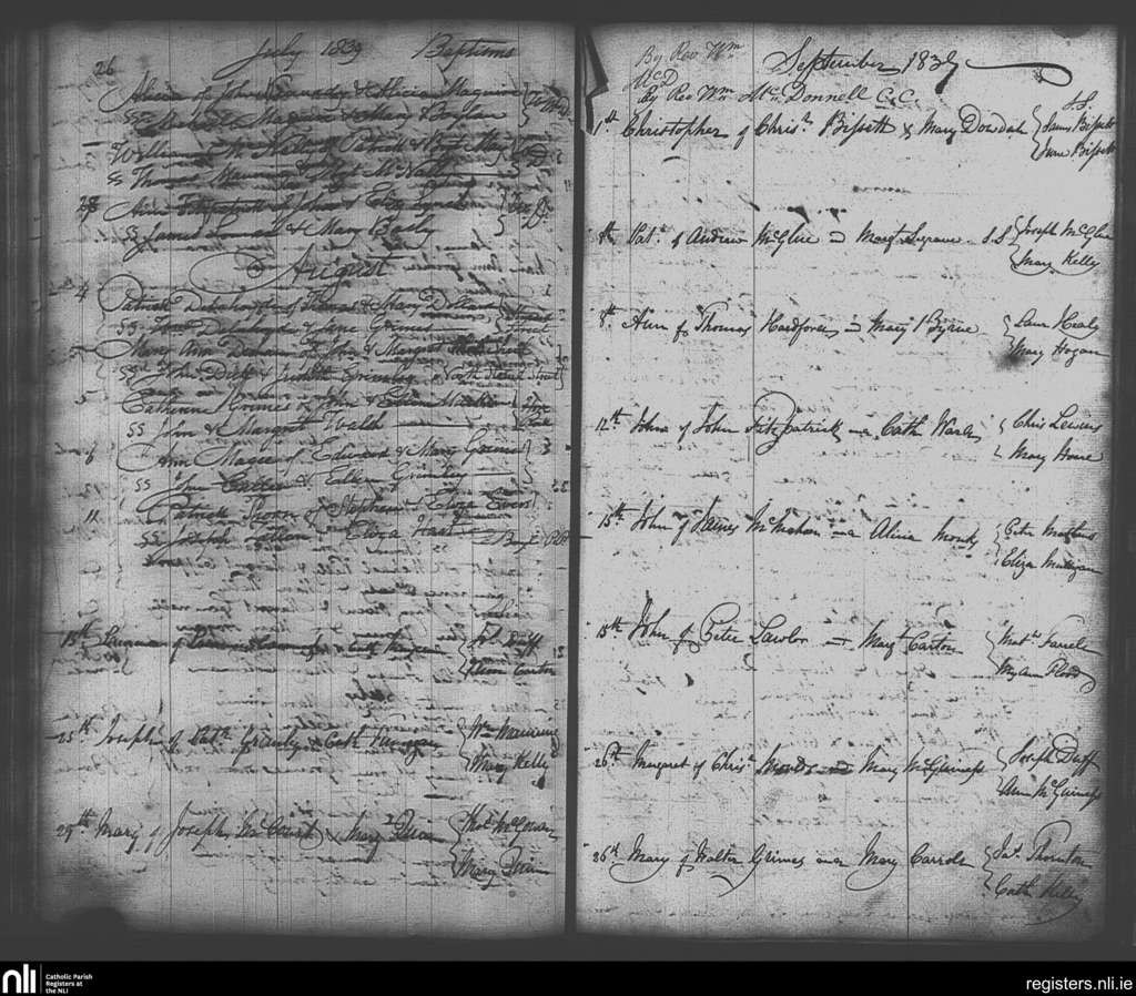 Skerries; County of Dublin; Archdiocese of Dublin. Baptisms, July 1839 to Sep. 1839