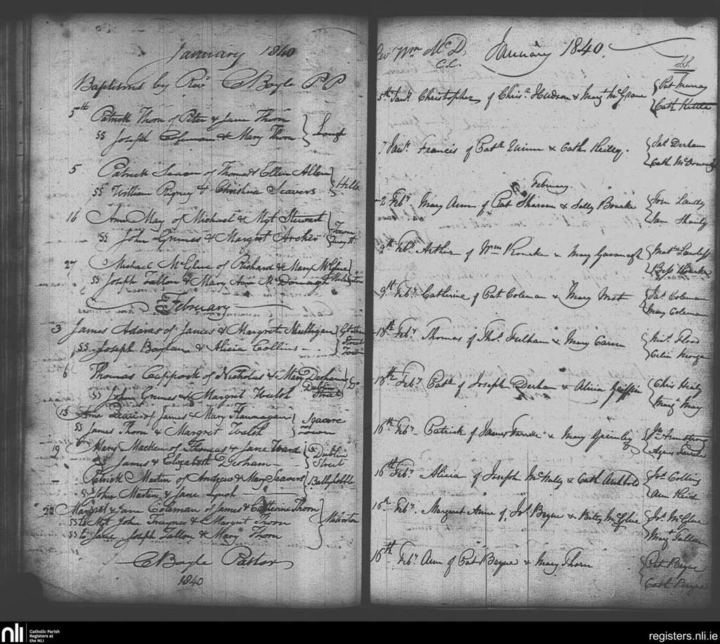 Skerries; County of Dublin; Archdiocese of Dublin. Baptisms, Jan. 1840 to Feb. 1840