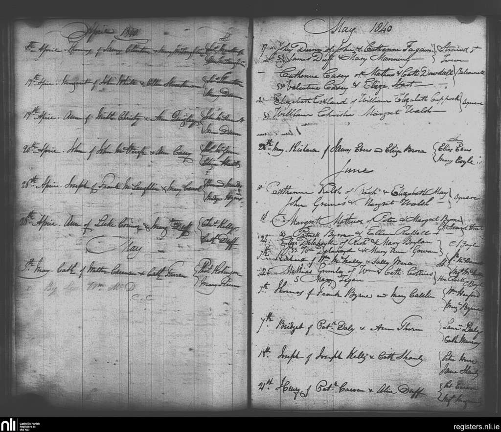 Skerries; County of Dublin; Archdiocese of Dublin. Baptisms, Apr. 1840 to June 1840