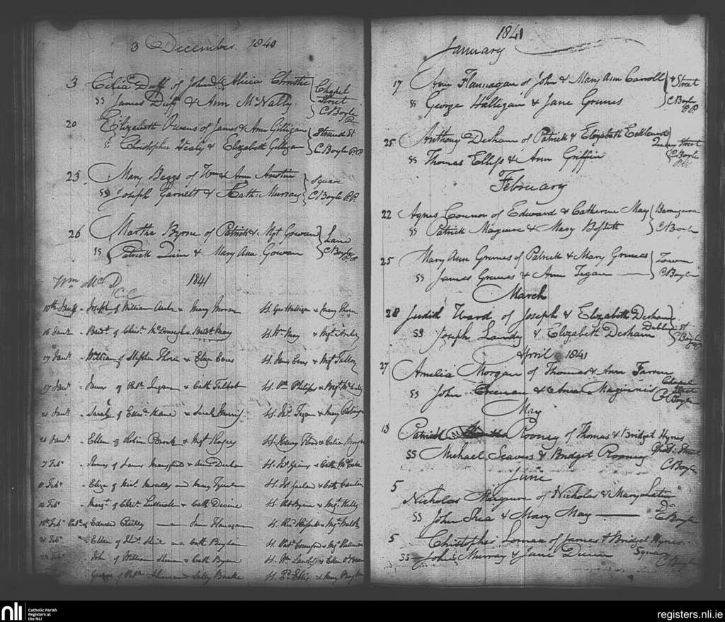 Skerries; County of Dublin; Archdiocese of Dublin. Baptisms, Dec. 1840 to June 1841