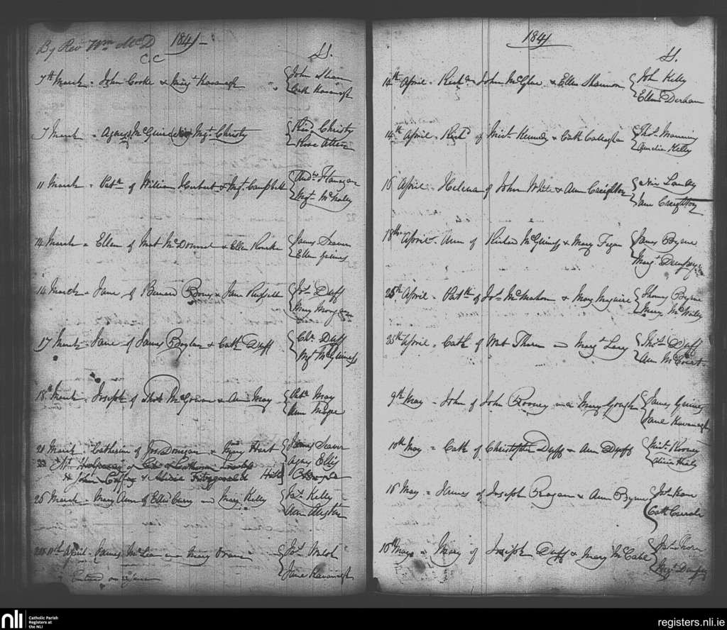 Skerries; County of Dublin; Archdiocese of Dublin. Baptisms, Mar. 1841 to May 1841