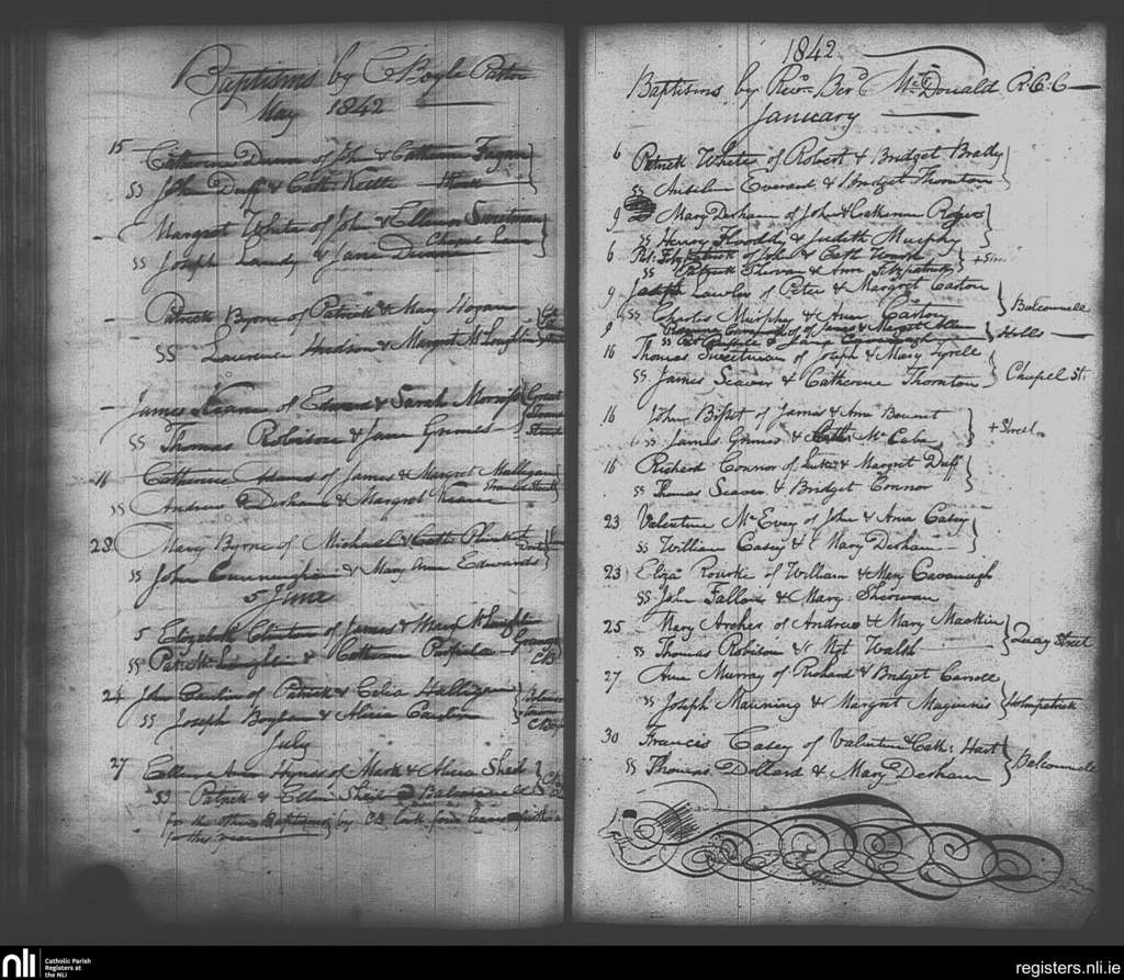 Skerries; County of Dublin; Archdiocese of Dublin. Baptisms, Jan. 1842 to July 1842