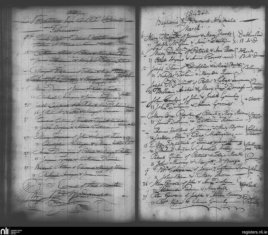 Skerries; County of Dublin; Archdiocese of Dublin. Baptisms, Feb. 1842 to Mar. 1842