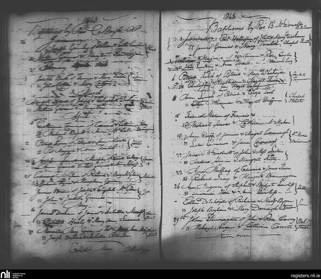 Skerries; County of Dublin; Archdiocese of Dublin. Baptisms, Jan. 1843 to May 1843