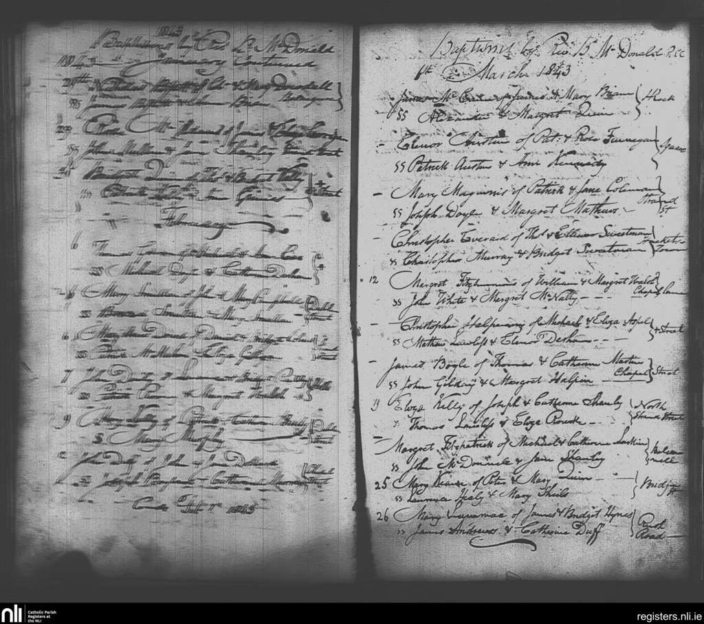 Skerries; County of Dublin; Archdiocese of Dublin. Baptisms, Jan. 1843 to Mar. 1843