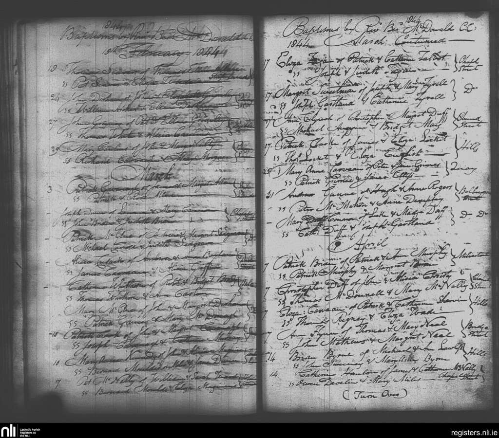 Skerries; County of Dublin; Archdiocese of Dublin. Baptisms, Feb. 1844 to Apr. 1844