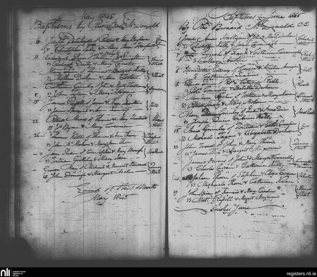 Skerries; County of Dublin; Archdiocese of Dublin. Baptisms, May 1845 to June 1845
