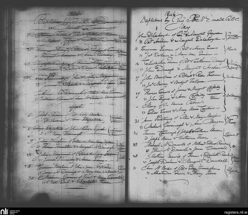 Skerries; County of Dublin; Archdiocese of Dublin. Baptisms, Mar. 1846 to May 1846