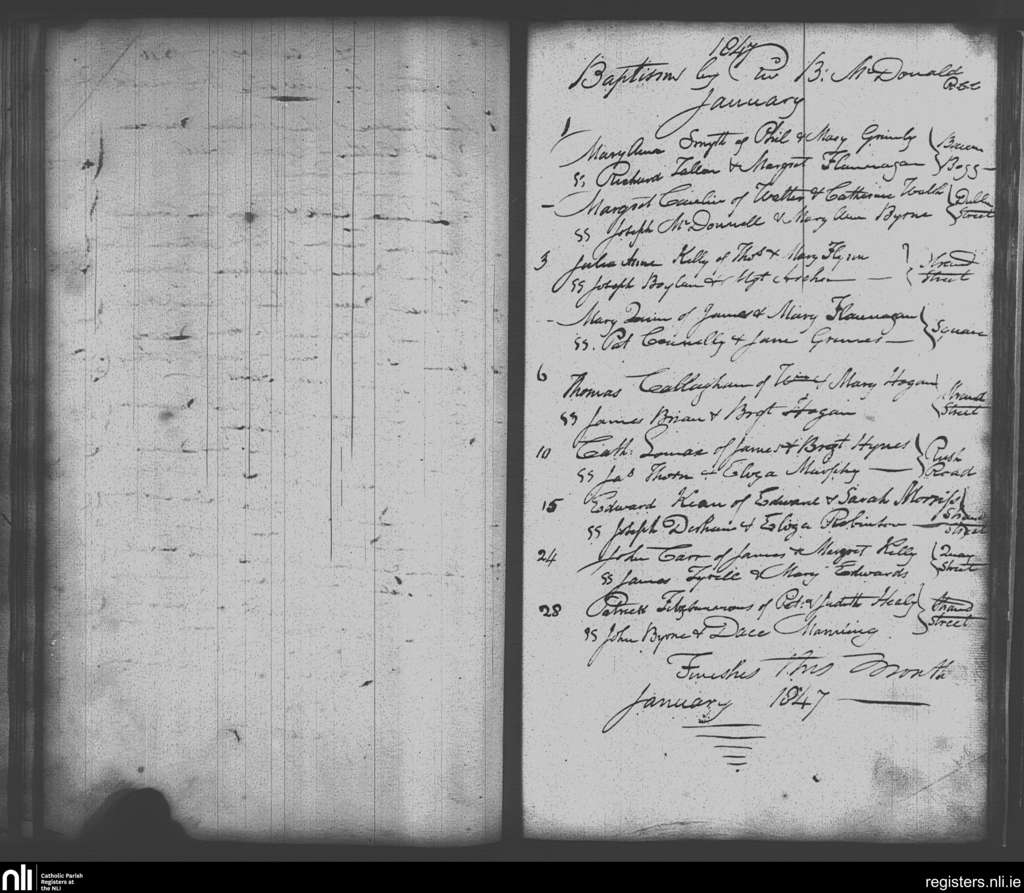 Skerries; County of Dublin; Archdiocese of Dublin. Baptisms, Jan. 1847