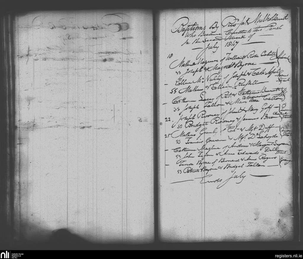 Skerries; County of Dublin; Archdiocese of Dublin. Baptisms, July 1847