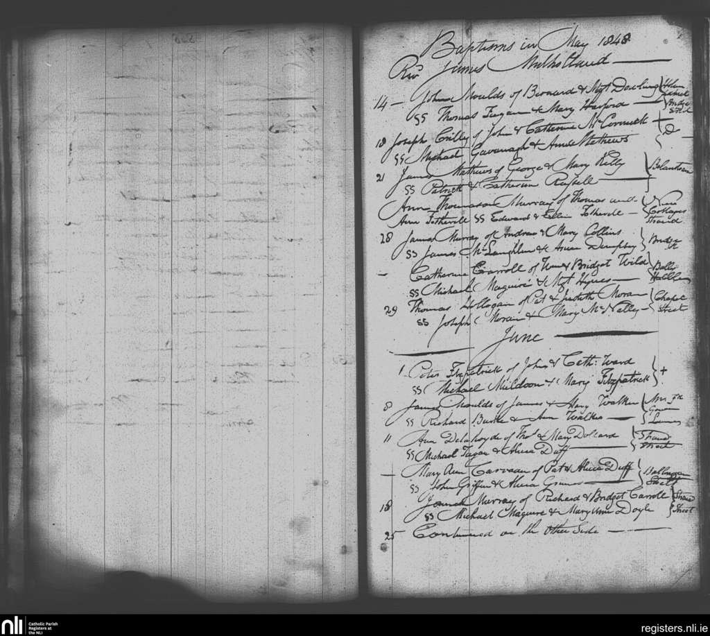 Skerries; County of Dublin; Archdiocese of Dublin. Baptisms, May 1848 to June 1848