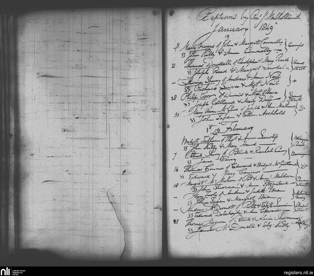 Skerries; County of Dublin; Archdiocese of Dublin. Baptisms, Jan. 1849 to Feb. 1849