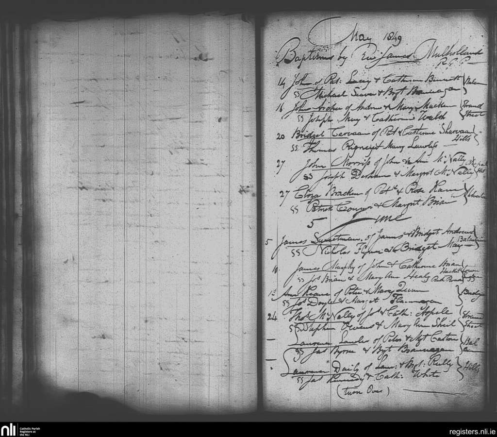 Skerries; County of Dublin; Archdiocese of Dublin. Baptisms, May 1849 to June 1849