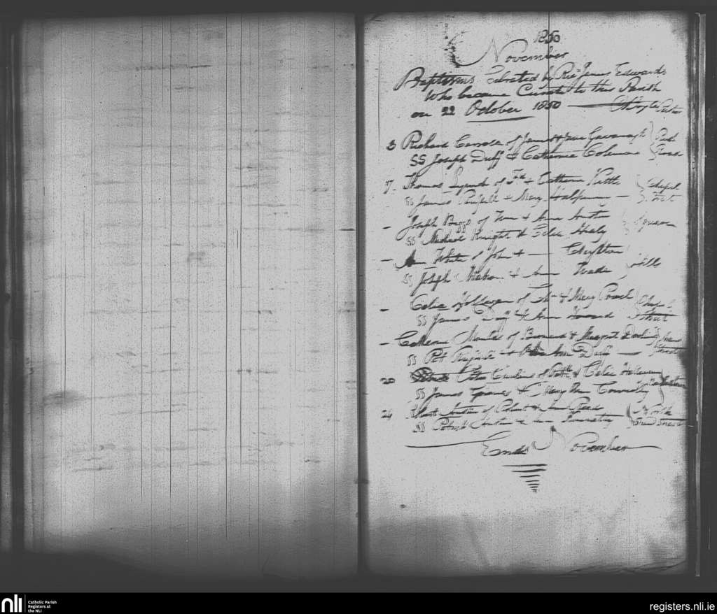 Skerries; County of Dublin; Archdiocese of Dublin. Baptisms, Nov. 1850