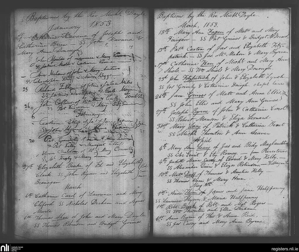 Skerries; County of Dublin; Archdiocese of Dublin. Baptisms, Jan. 1853 to May 1853