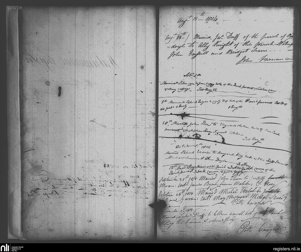 Skerries; County of Dublin; Archdiocese of Dublin. Marriages, Aug. 1814 to Nov. 1814