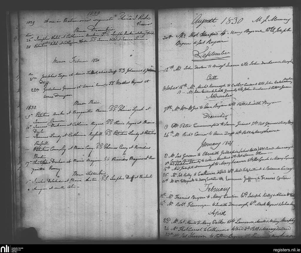 Skerries; County of Dublin; Archdiocese of Dublin. Marriages, June 1829 to Apr. 1831