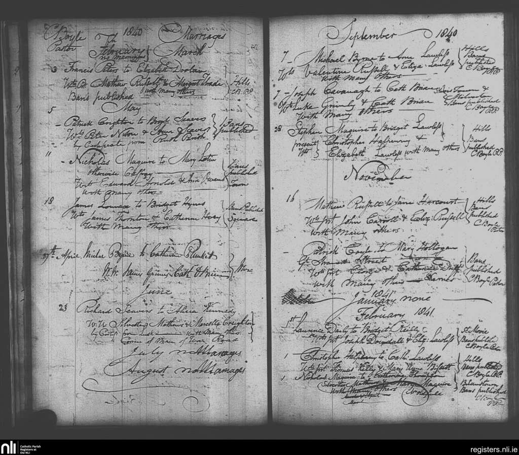 Skerries; County of Dublin; Archdiocese of Dublin. Marriages, Feb. 1840 to Feb. 1841