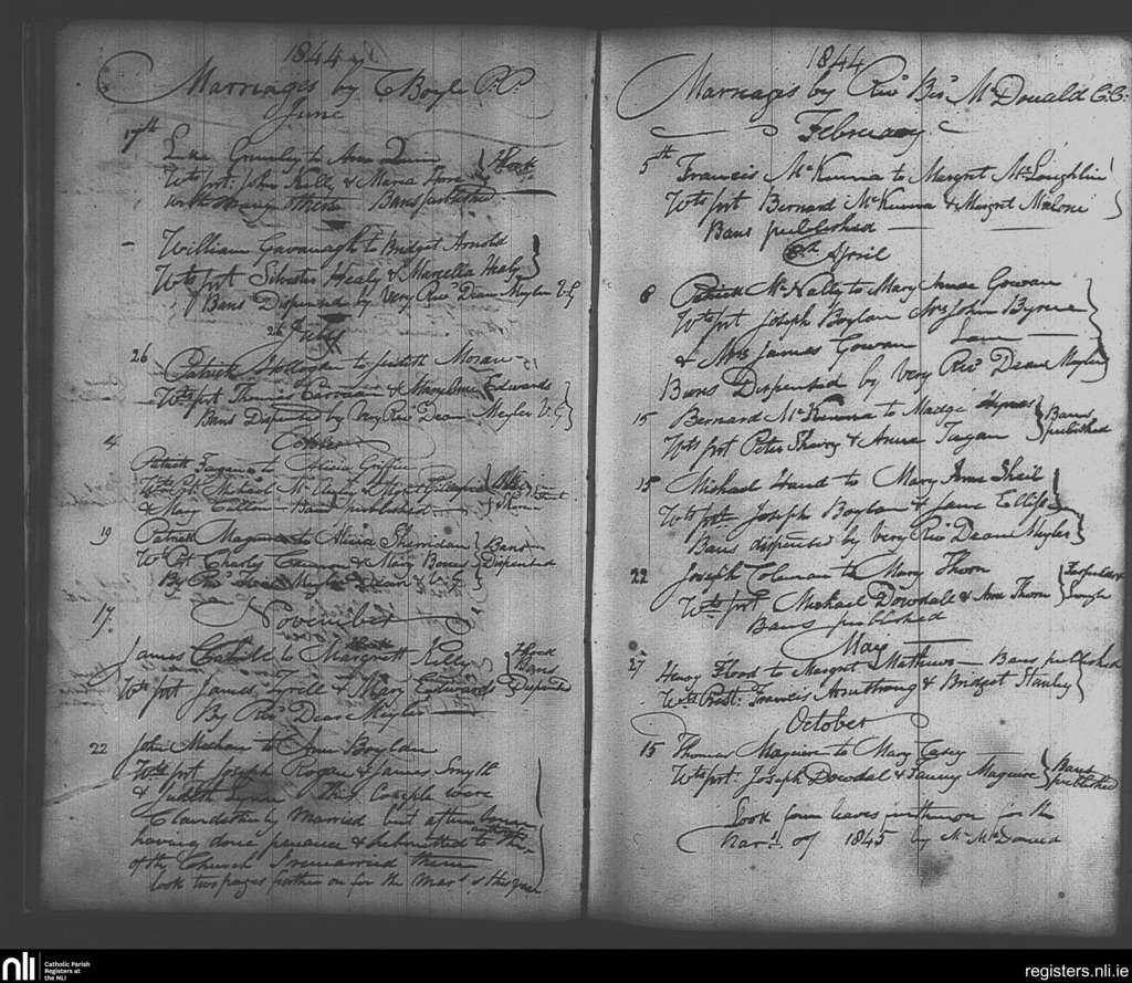 Skerries; County of Dublin; Archdiocese of Dublin. Marriages, Feb. 1844 to Nov. 1844