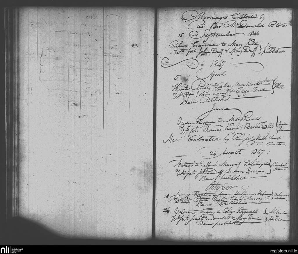 Skerries; County of Dublin; Archdiocese of Dublin. Marriages, Sep. 1846 to Oct. 1847