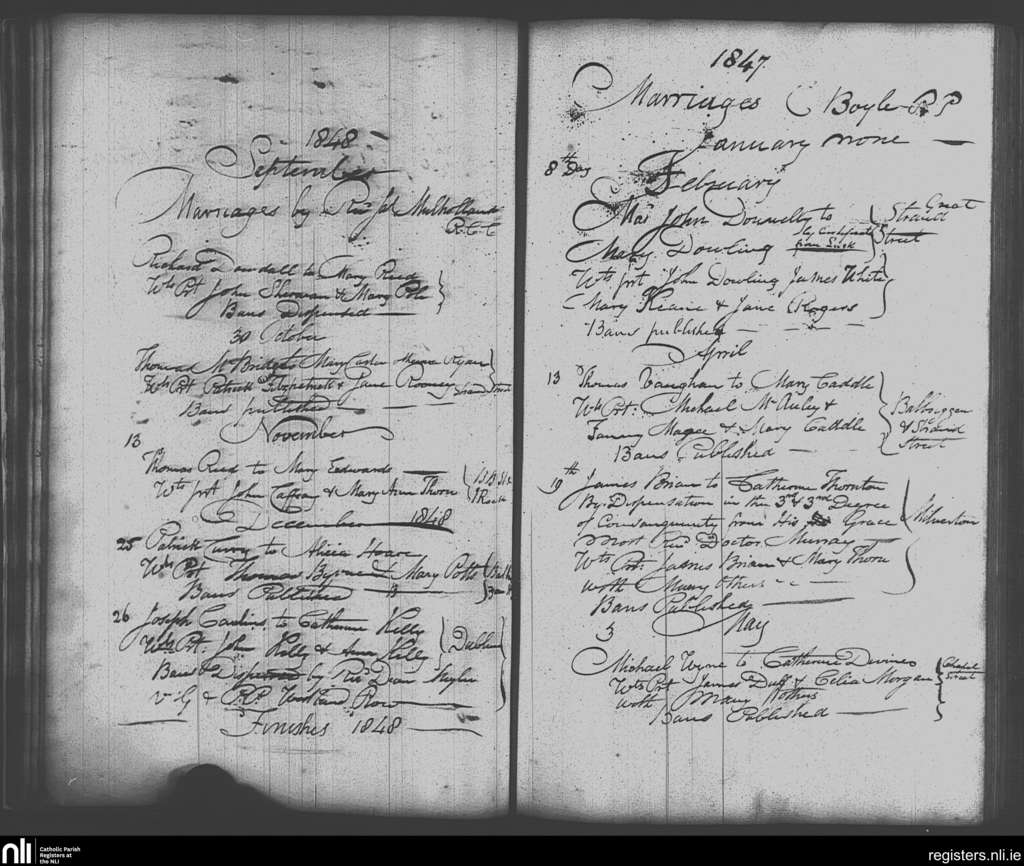 Skerries; County of Dublin; Archdiocese of Dublin. Marriages, Feb. 1847 to Dec. 1848