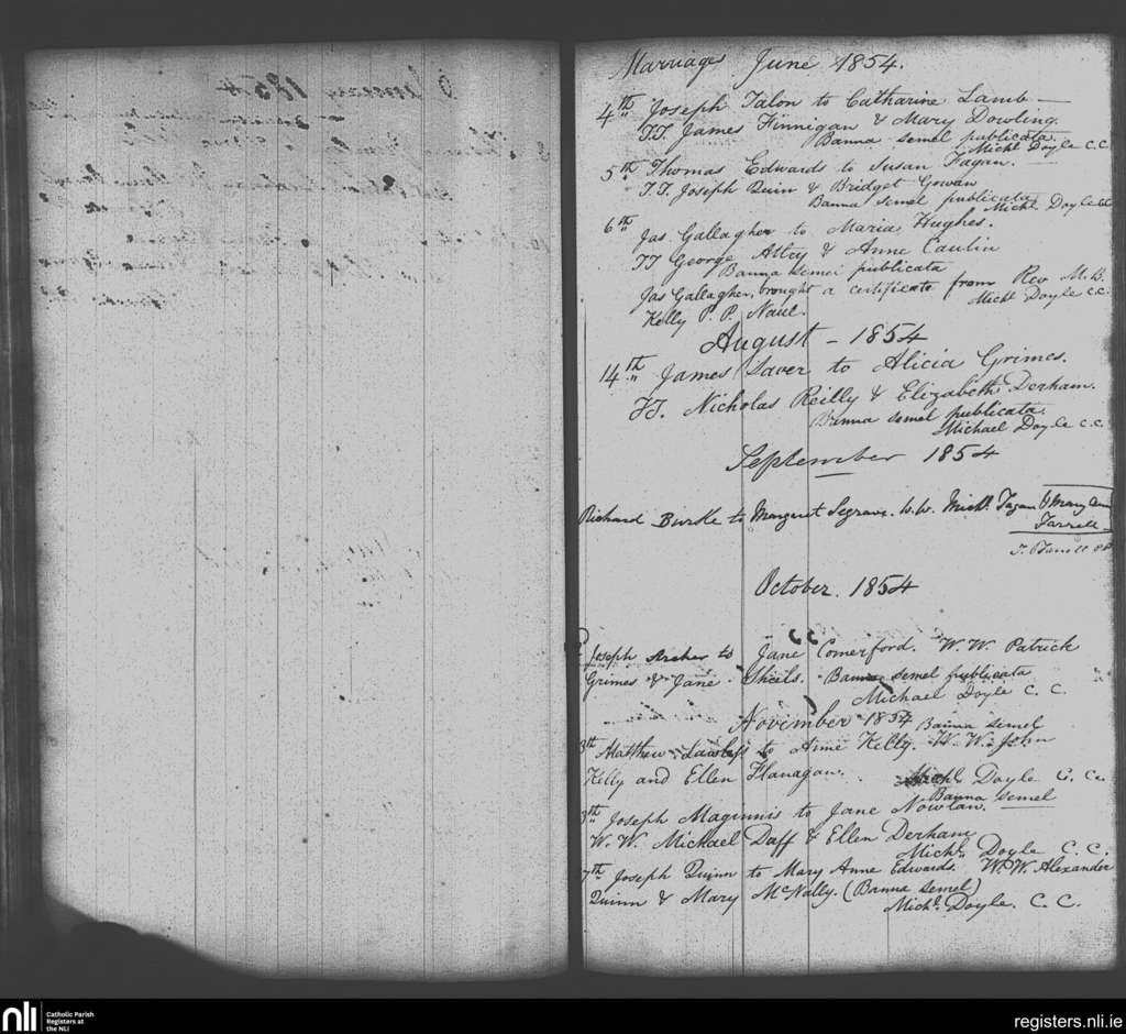 Skerries; County of Dublin; Archdiocese of Dublin. Marriages, June 1854 to Nov. 1854